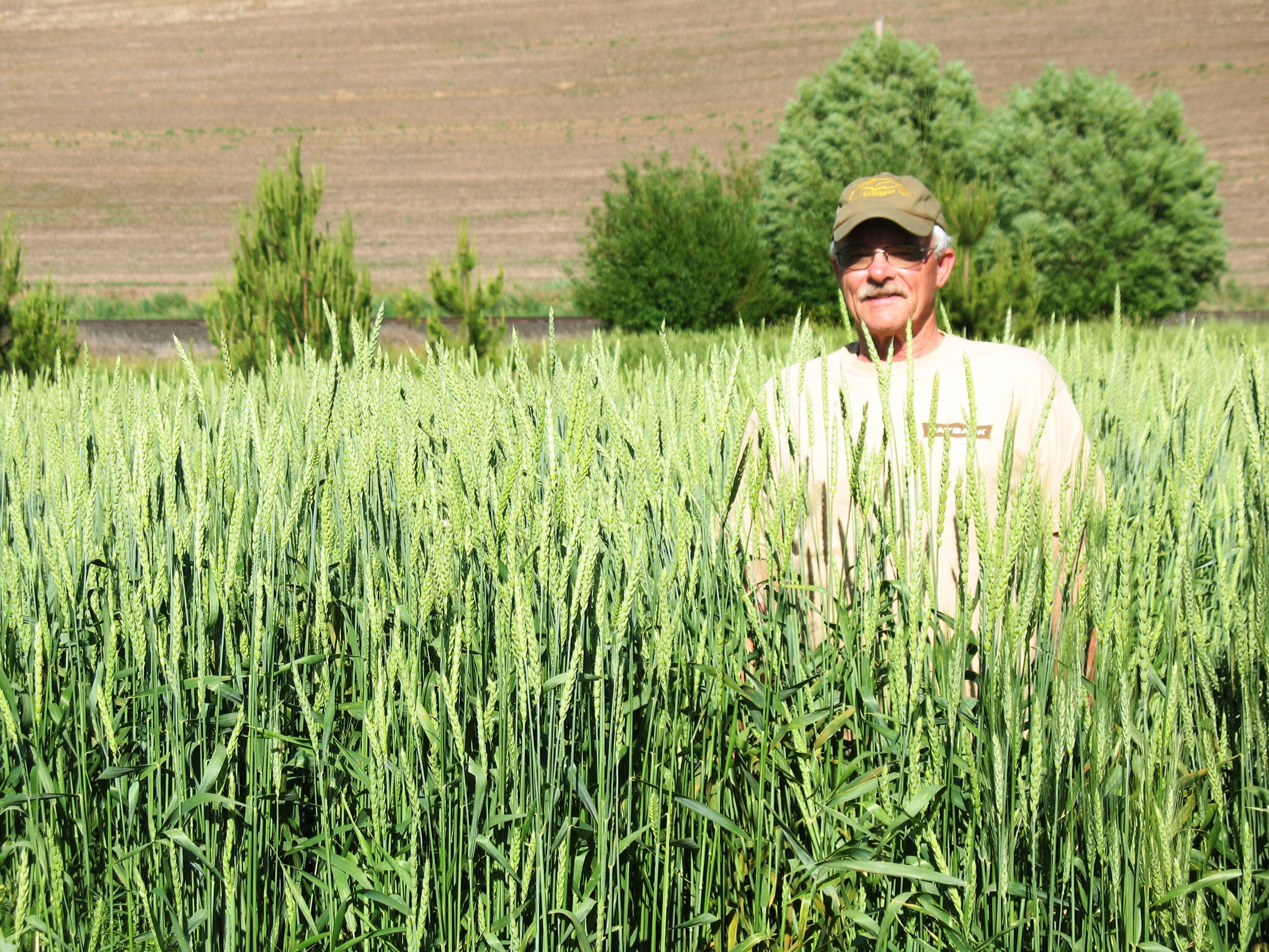 Heritage wheat can grow much taller than modern wheat, which increases risk of lodging. In this photo, our co-founder Don, who is well over 6 feet tall, is standing in a field of heritage wheat that is approaching his height!