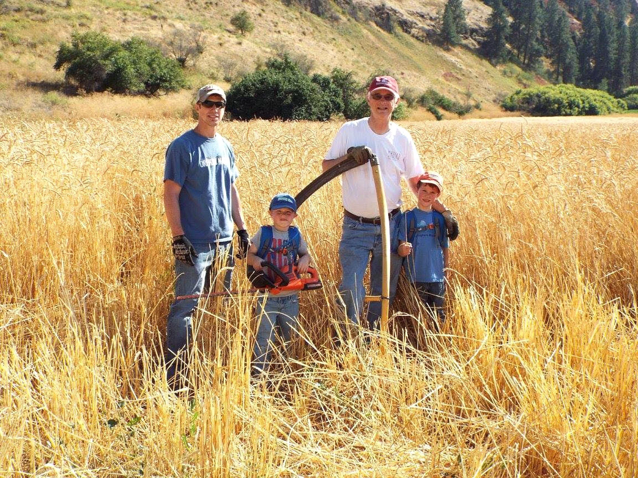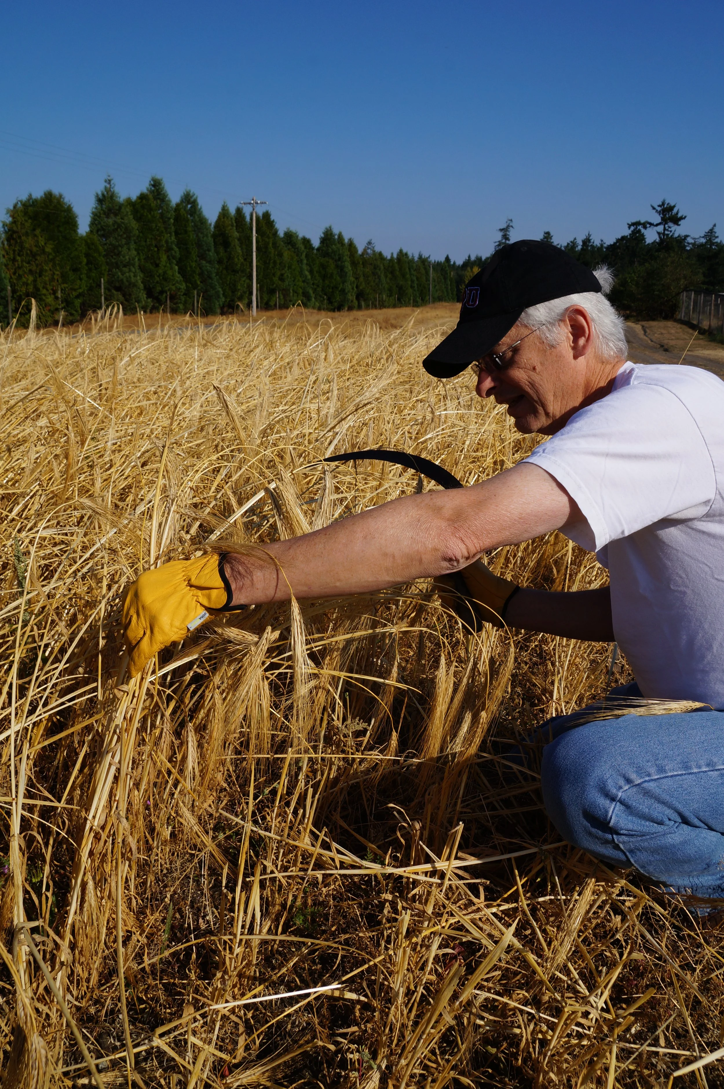 Palouse Heritage co-founder, Richard, cuts heritage grain by hand using a sickle.